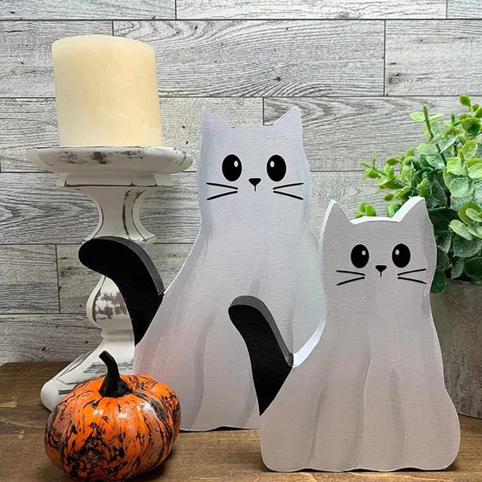 【Halloween Decorations Indoor】More than just a decoration, our wooden ghost cat figurine is a conversation . Its whimsical presence adds a hint of charm and intrigue to any room. Get ready for compliments and questions about this eye-catching decor.