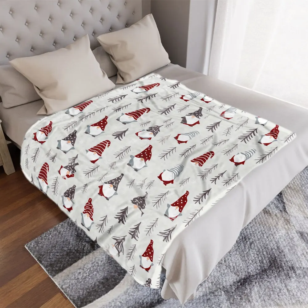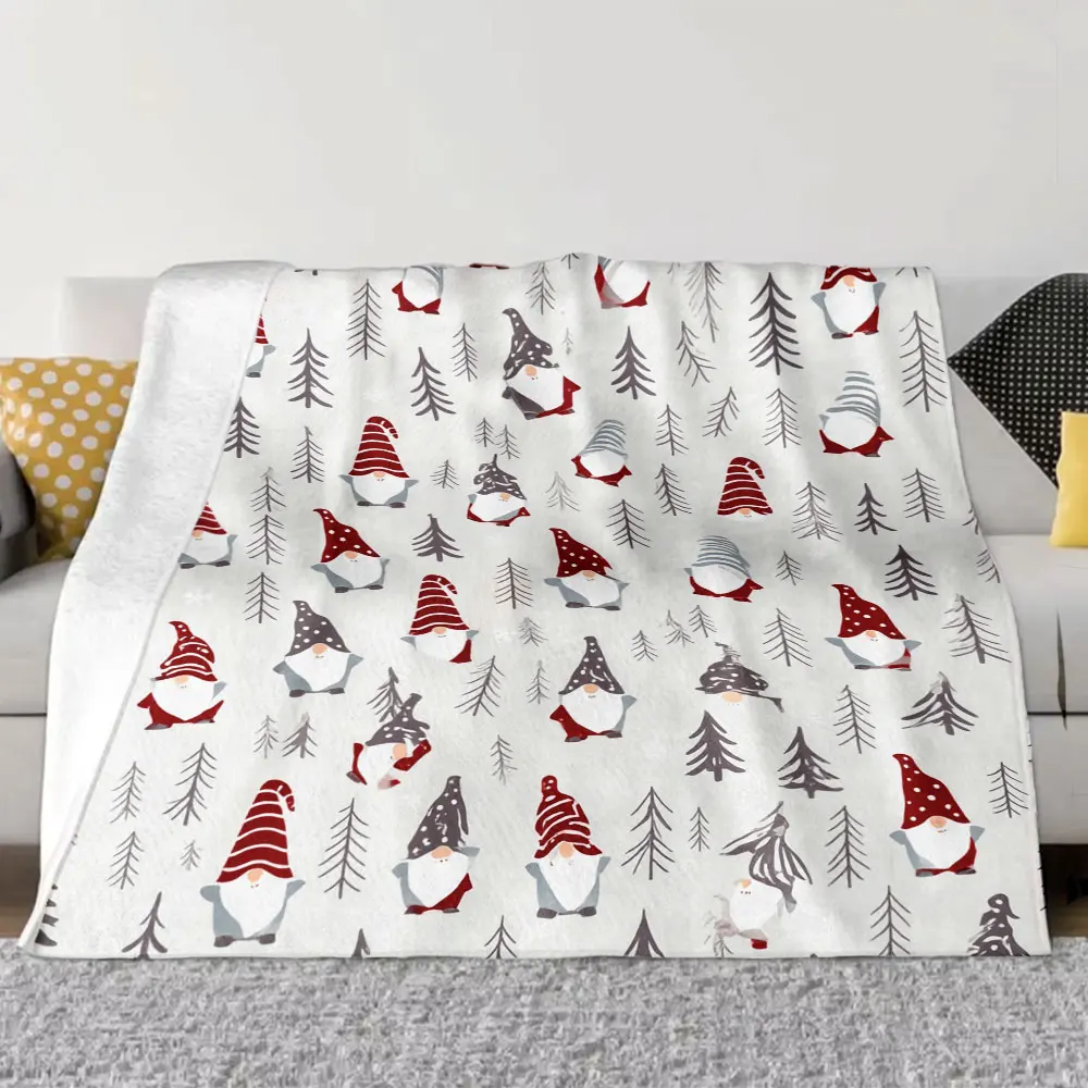 Gnome & Evergreen Trees Blanket - Whimsical Festive Pattern
