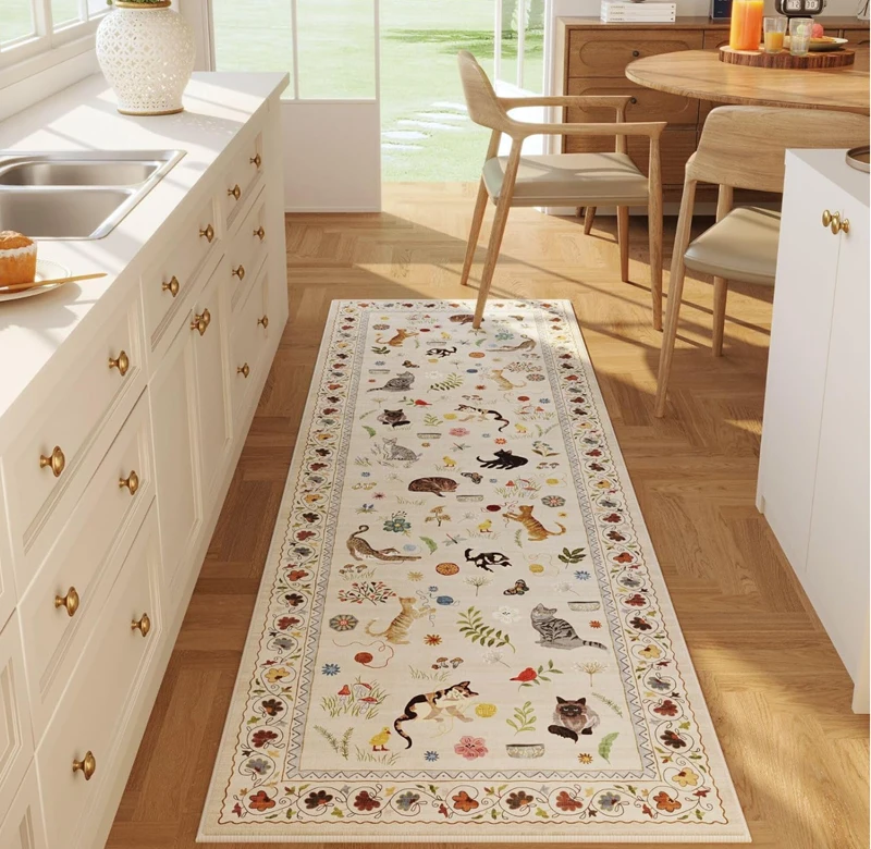 Non Slip Washable Kitchen Runner Rug Cute Cat Retro Bohemian Modern Abstract Home Decor