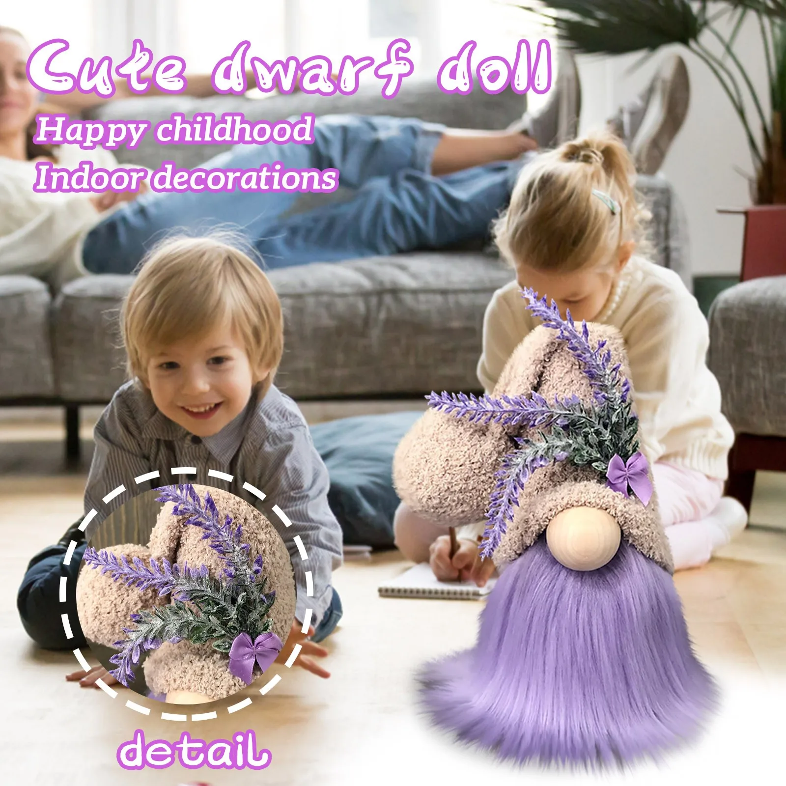 Lavender Carnival Gnome Dwarf Home Decoration Ornament Lavender Elfs Bow Purple Rudolf Doll