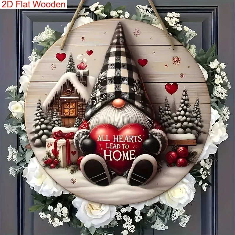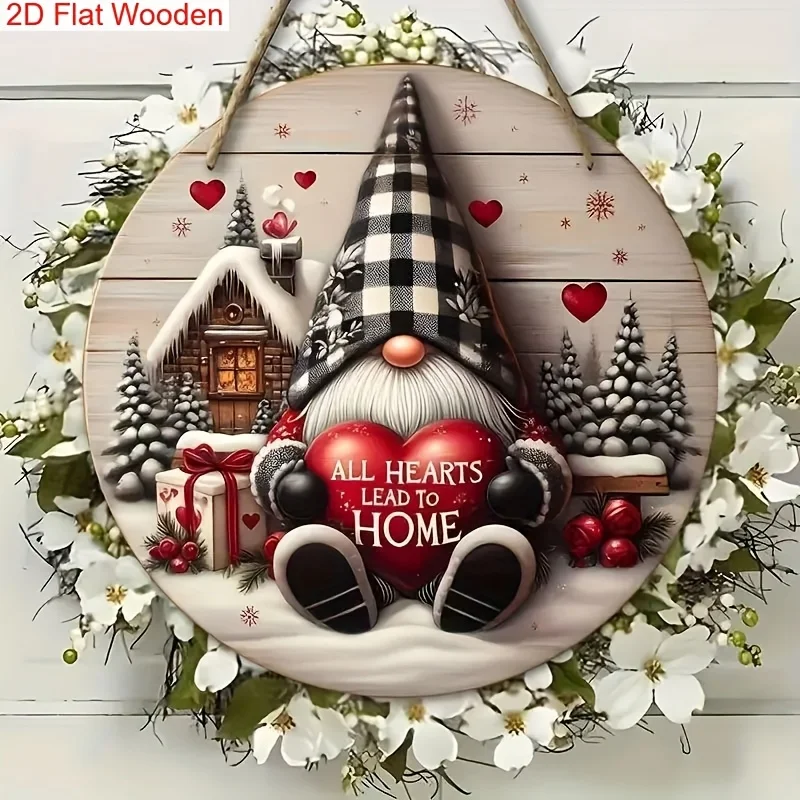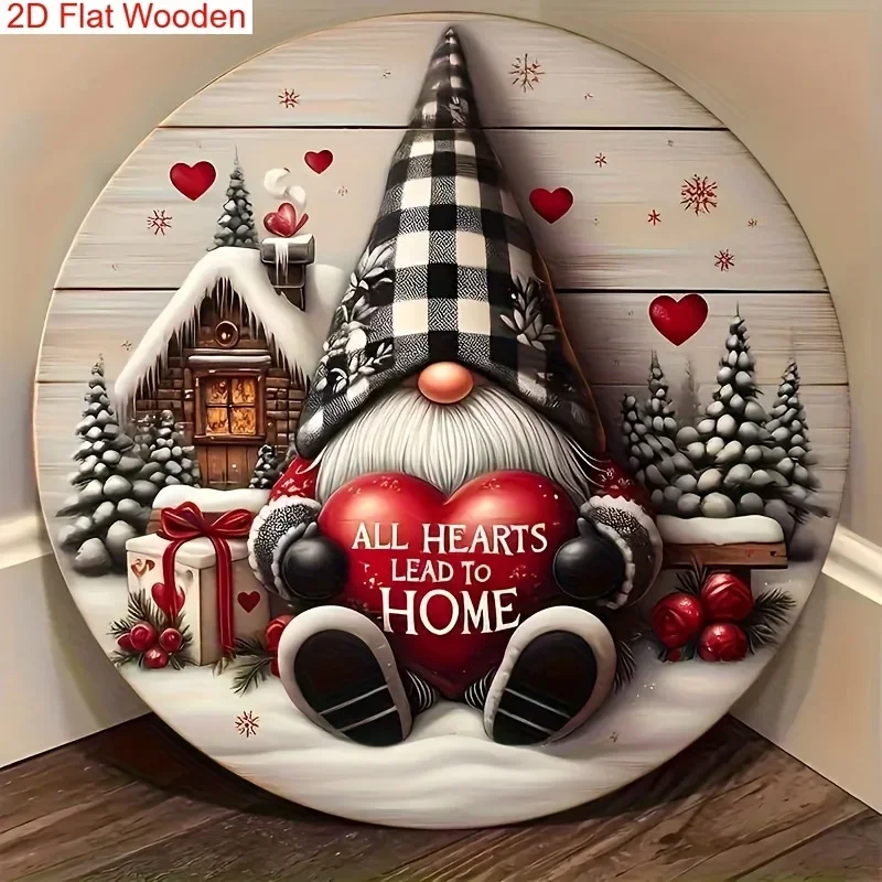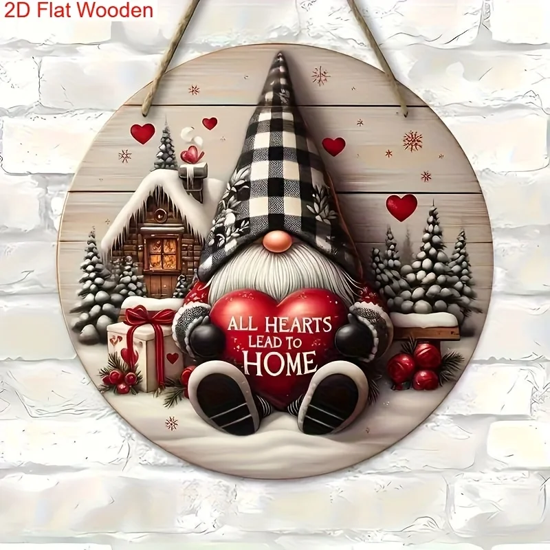 1pc Festive Gnome Christmas Wooden Sign - Snowy Winter Scene