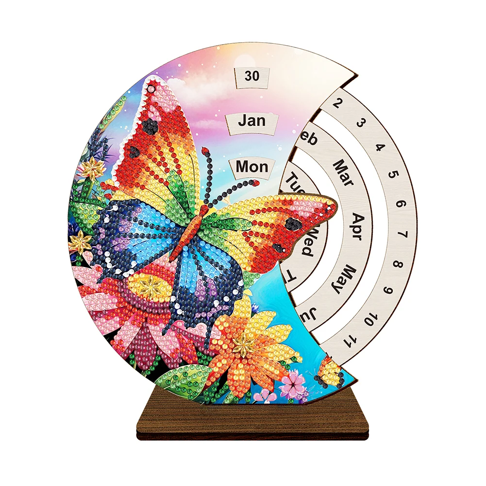 A rotating calendar adorned with a uniquely shaped, five-dimensional diamond panel.