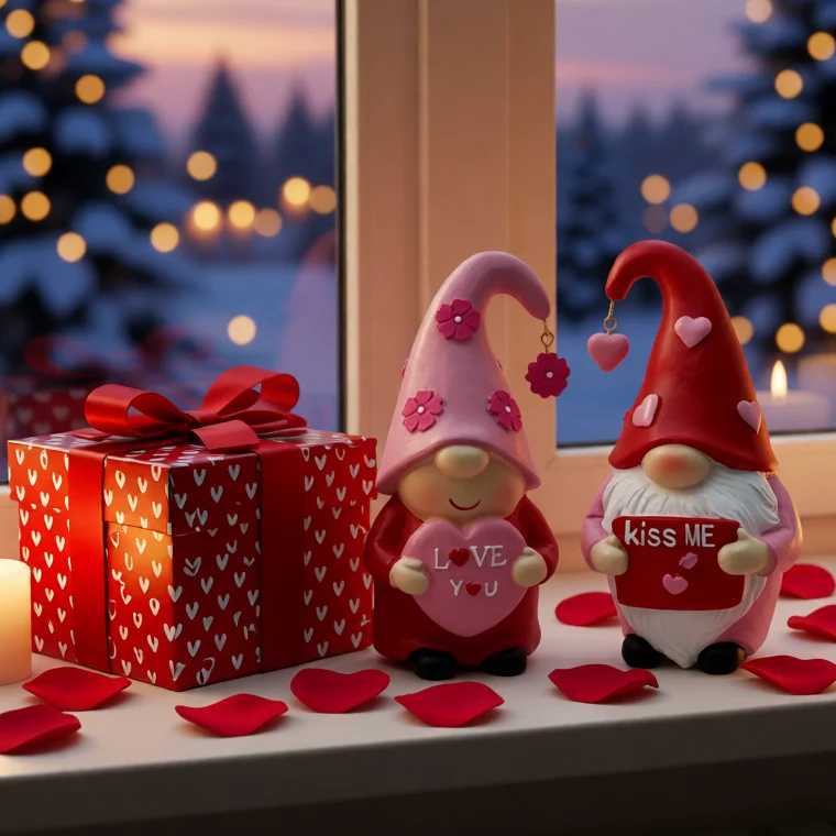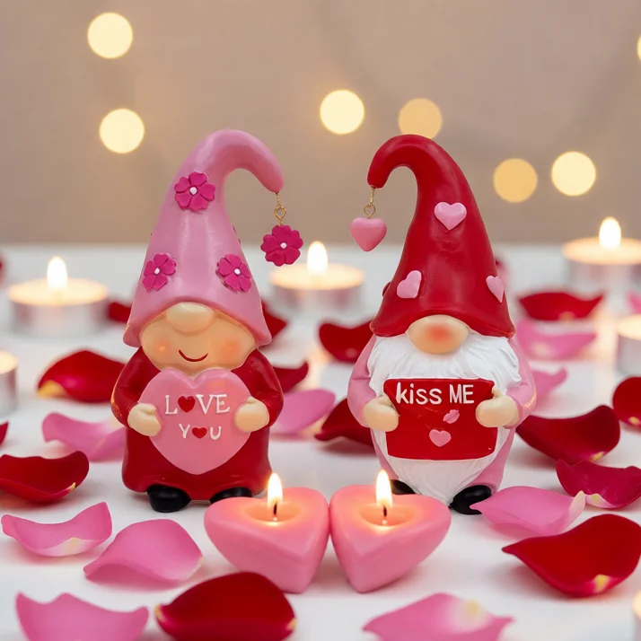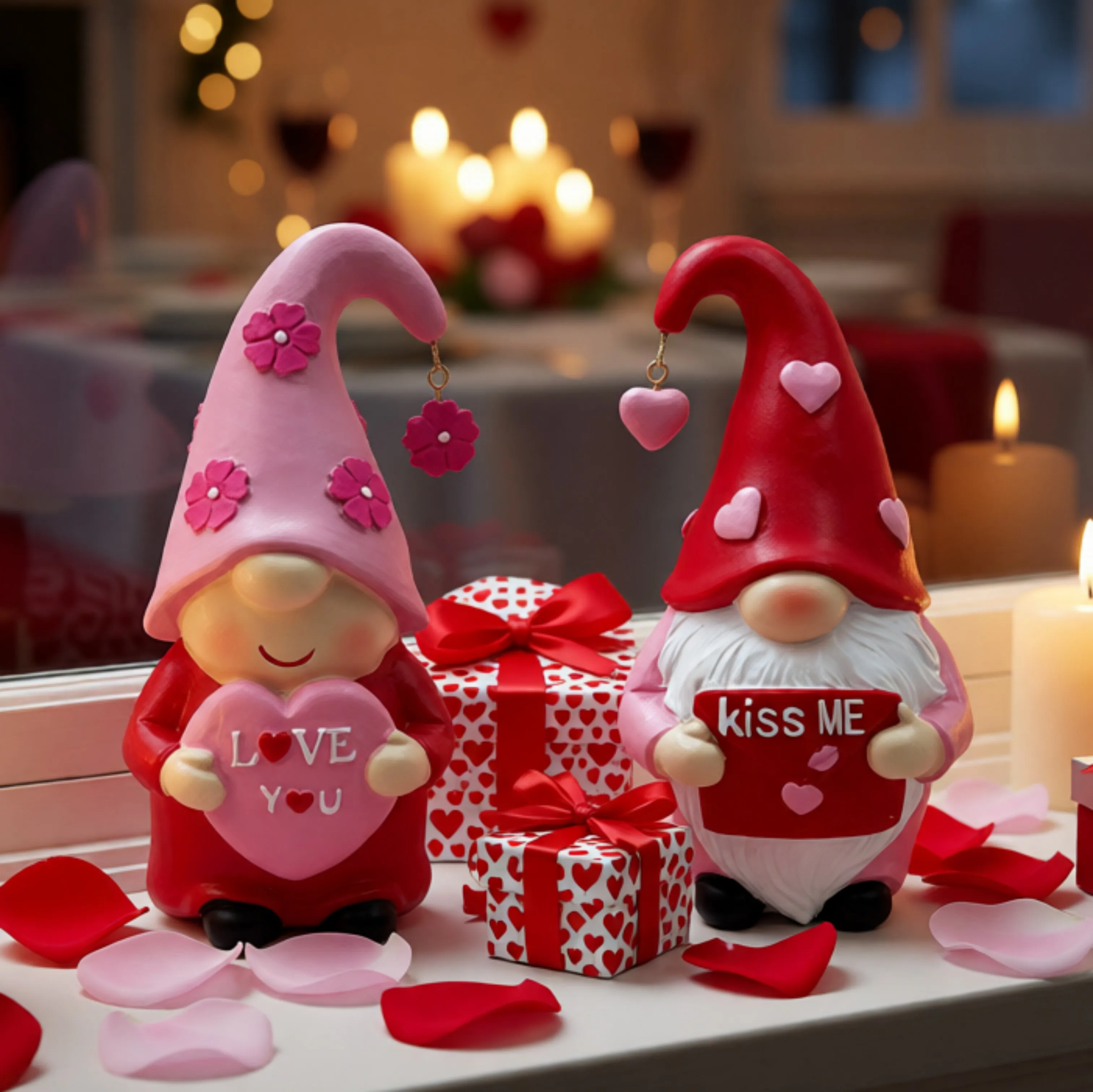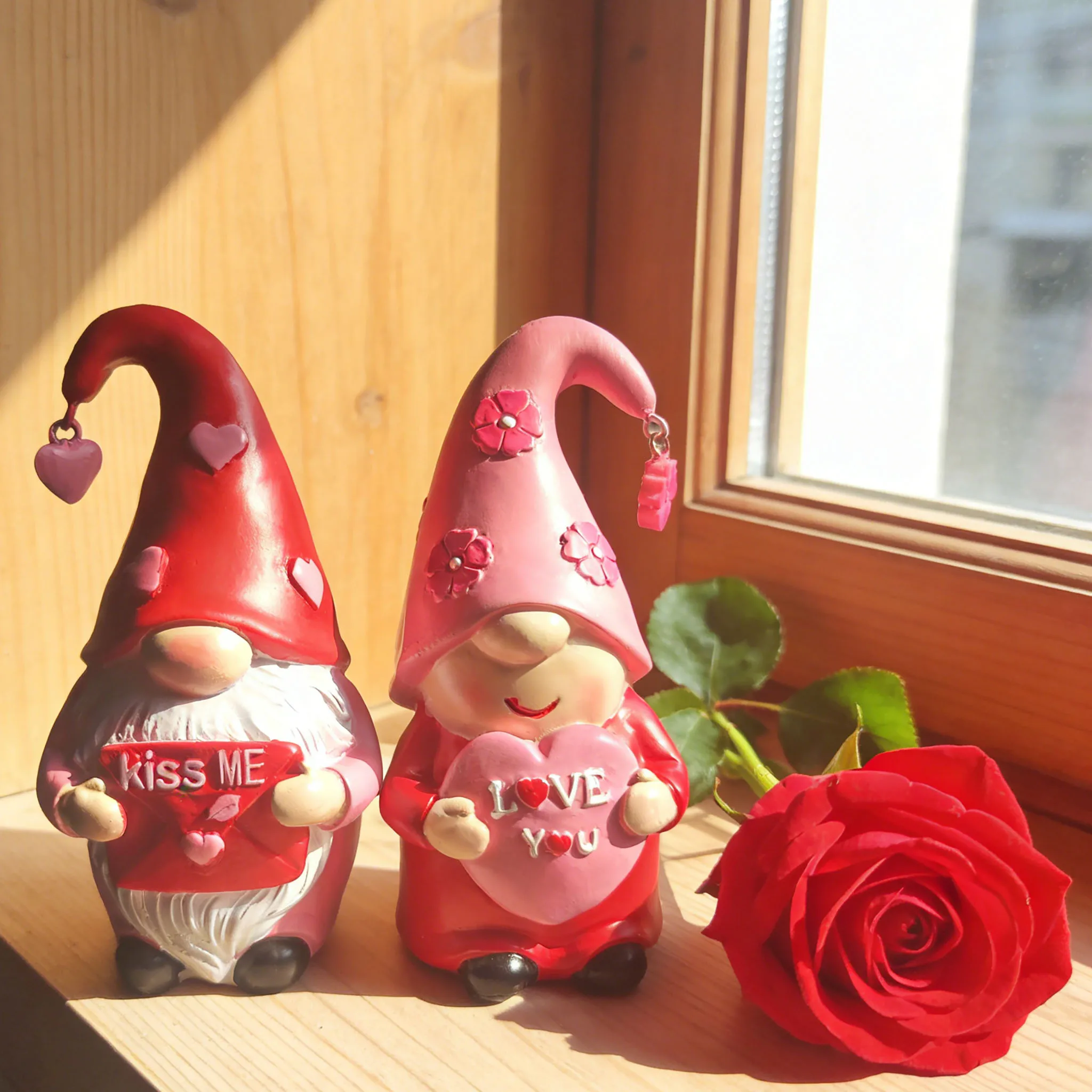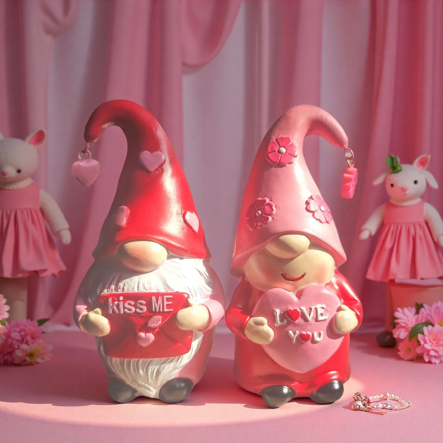 Valentine's Day Gnome Couple Figurine with Love You & Kiss Me